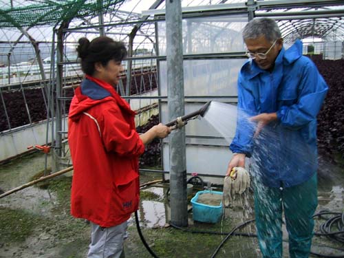 カメラ目線で植える章ちゃん