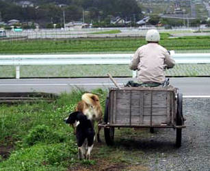 遅れて章ちゃんらんらんも田んぼにむかいます。