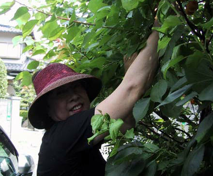 早速二人で実をもぎます。