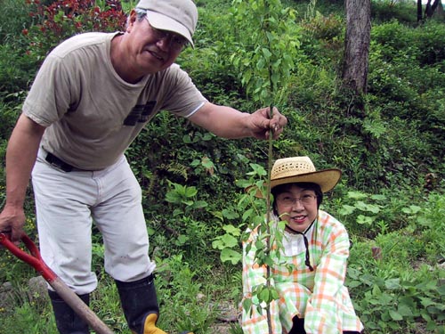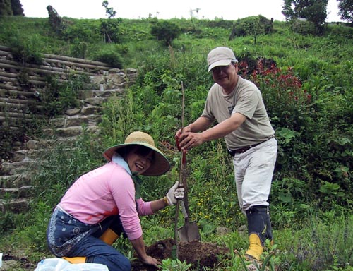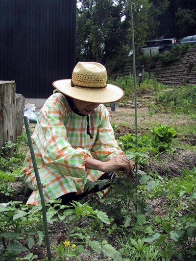 雨が降り出したので、急いでサツマイモの苗を2畝植えて