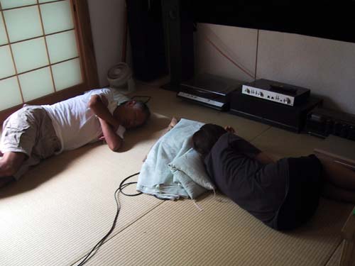遊びつかれて畳にごろり