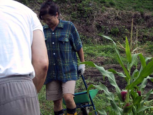 それを1輪車にのっけて畑にまきます。
