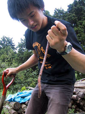 でっかいミミズにびっくり。
