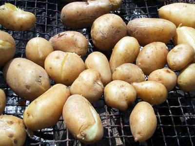 収穫したジャガイモにバター