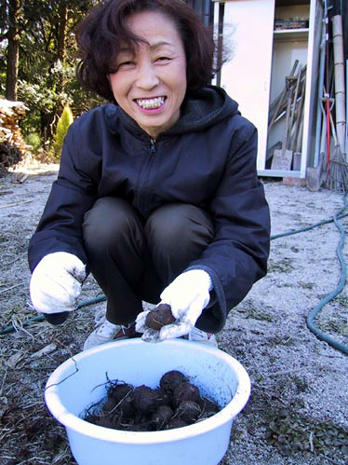 だんな様が「ざるに入れて川につければすぐに綺麗になるよ」とアドバイス。