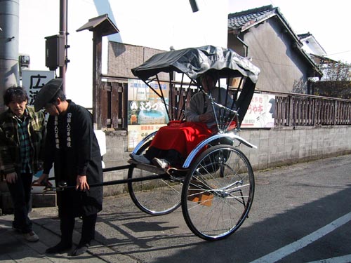 観光客を乗せた人力車