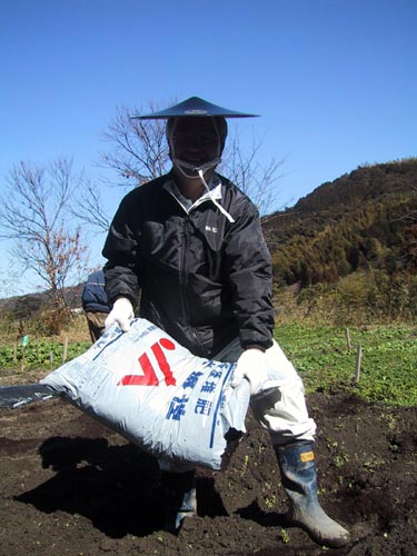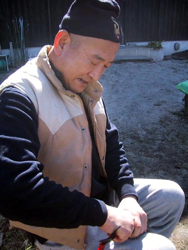 さてこの陣笠をかぶって農作業に精を出しているのはどなた?
