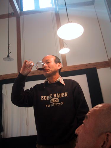 ふさふさせんせ真剣な面持ちで試飲