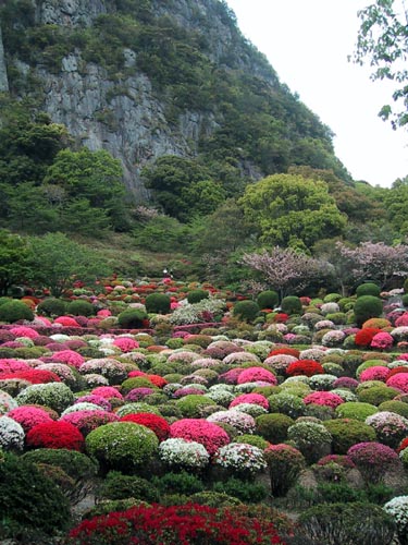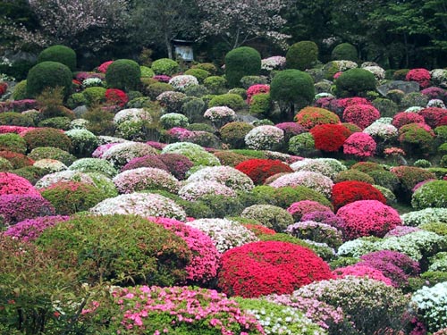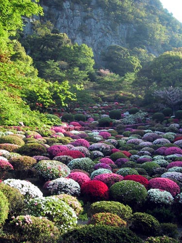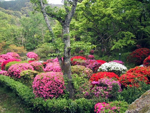 色とりどりの躑躅がきれいに(まるで桜餅みたいに)並んでいます。