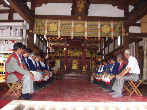 氏子の8町内から、神輿にふとんを積んで神社に入ります。