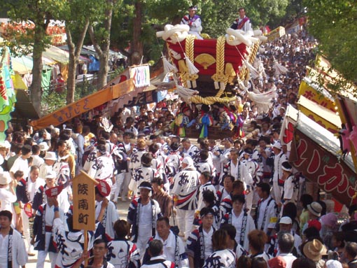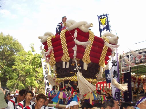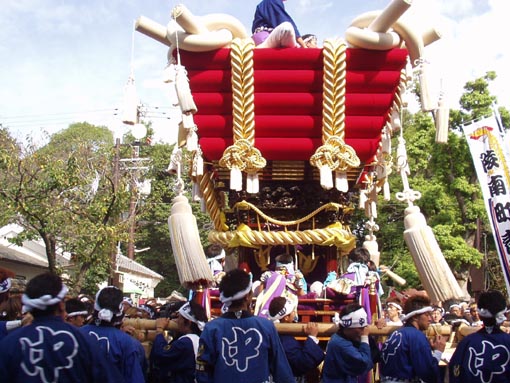 毎年旧暦の8月15日、神社のお祭り「月見祭」のひとつにこの「ふとん太鼓」