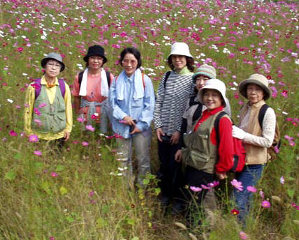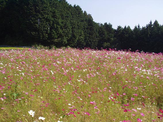 2 ここからコスモスが咲く田舎道を抜け、山にあがります。