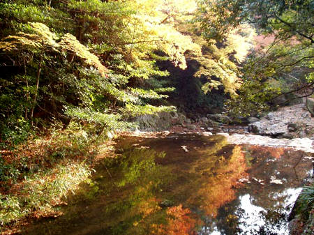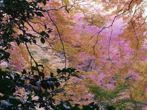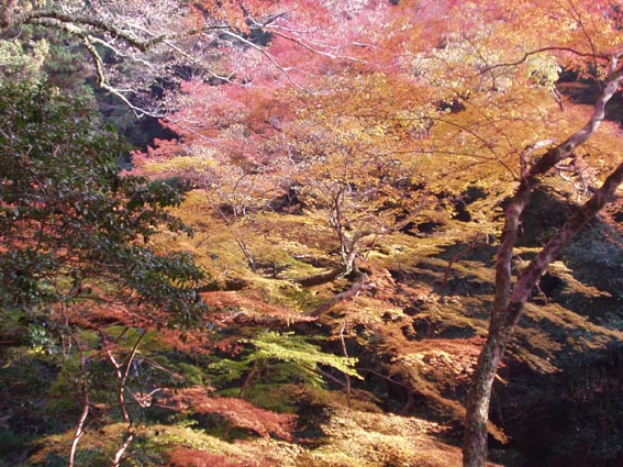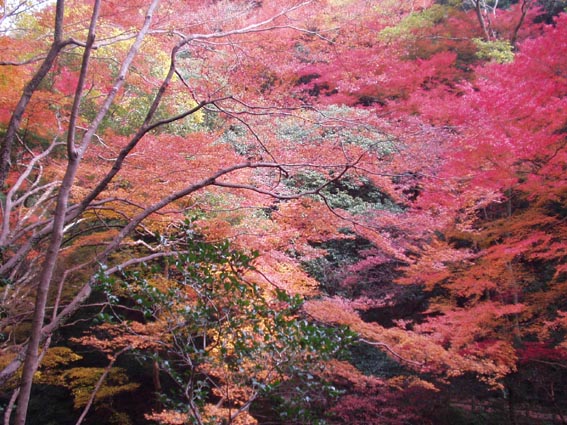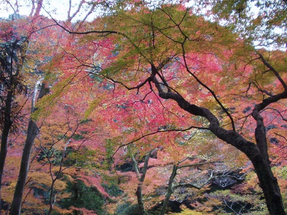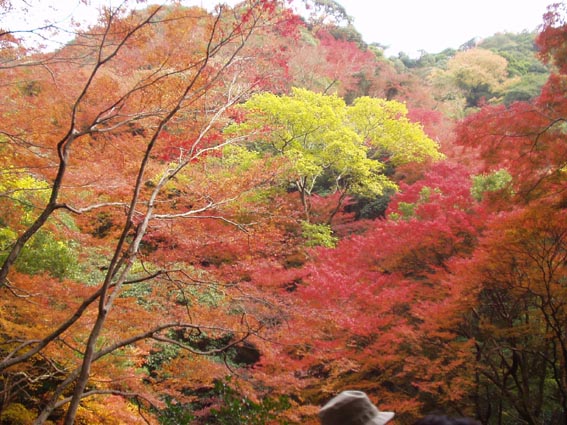 3.4 はるか上を見上げると紅葉した箕面の山が。これからこの頂上まで。