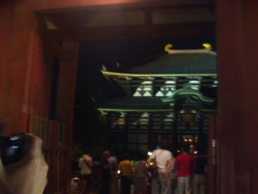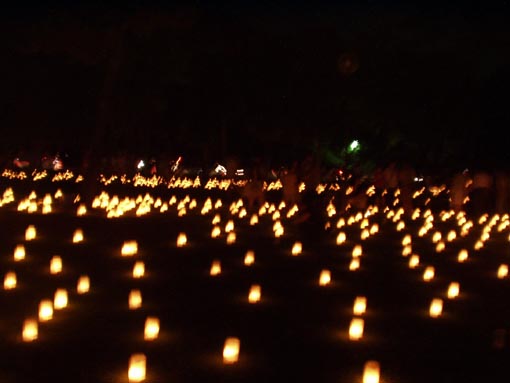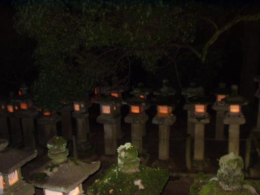 参道沿いの石灯篭が点燈しているのですが、人の流れについて行くだけで