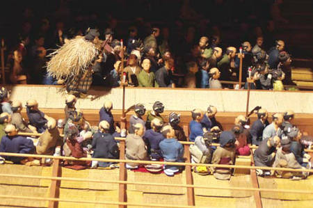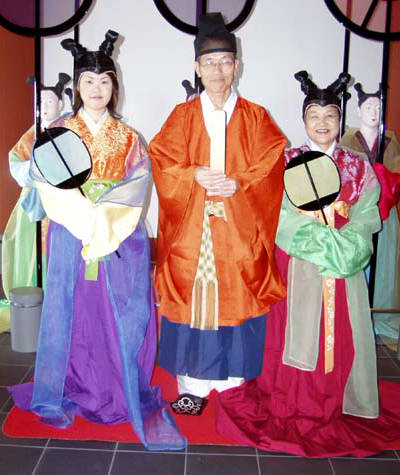 まるで高松塚から抜け出た女官のよう。