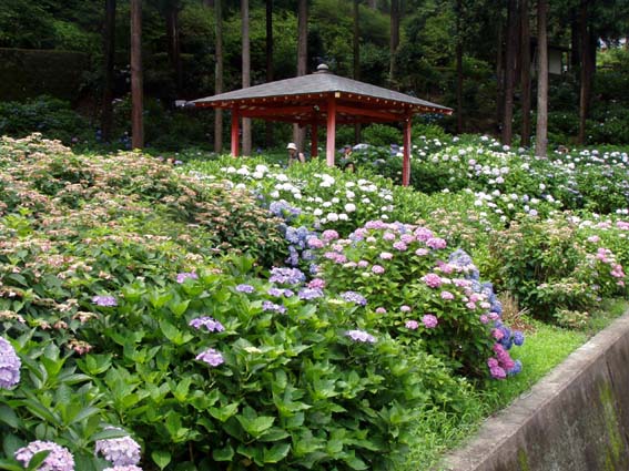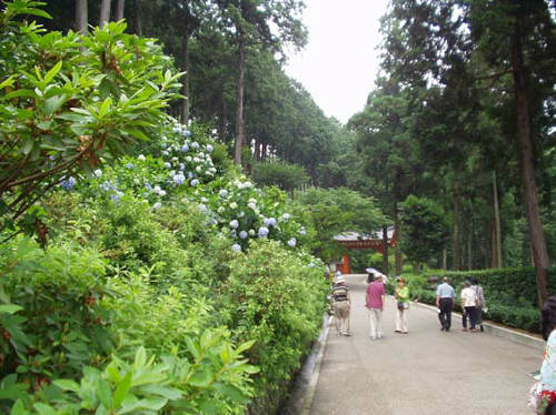 2. 山門への道にもあじさい。