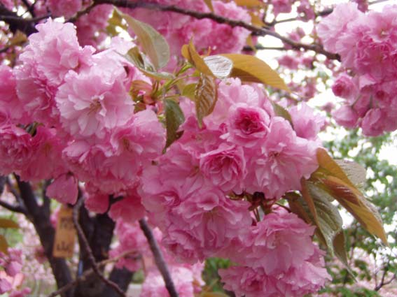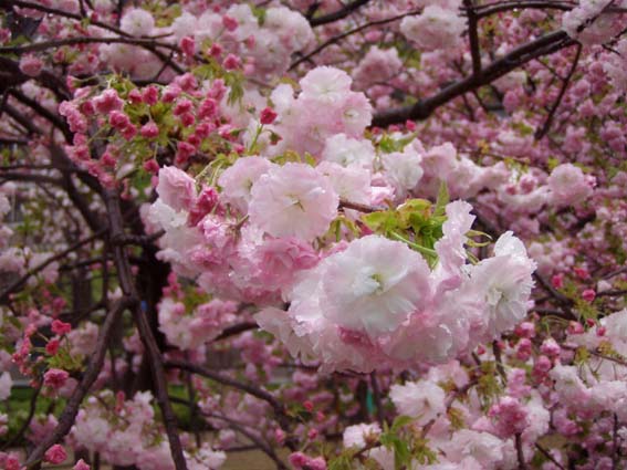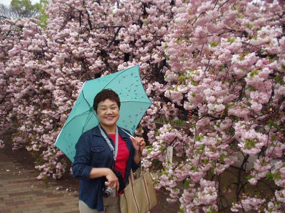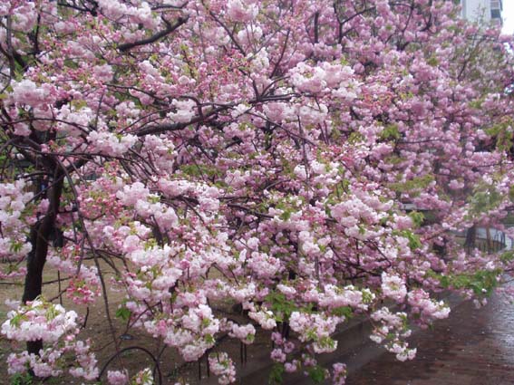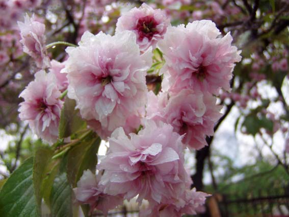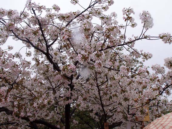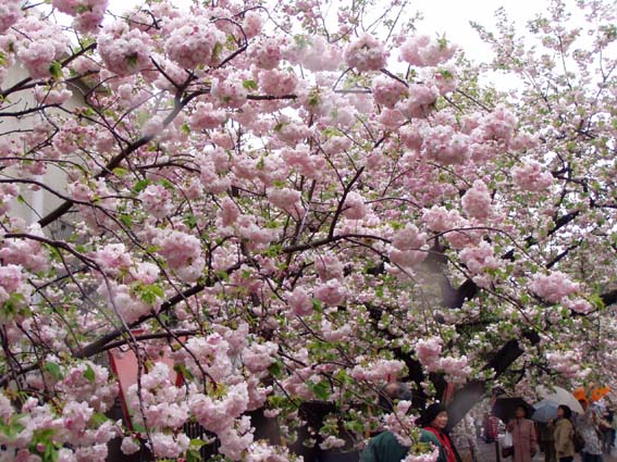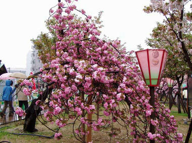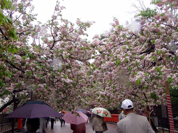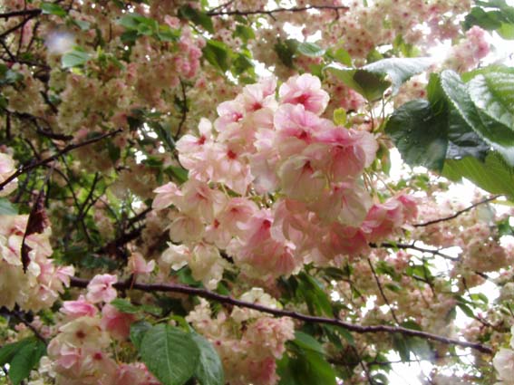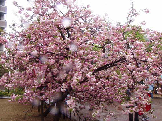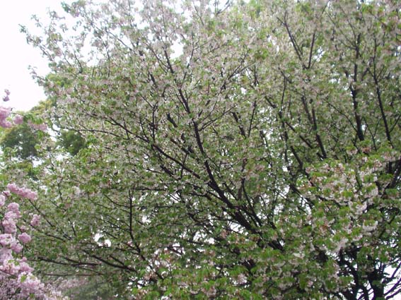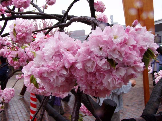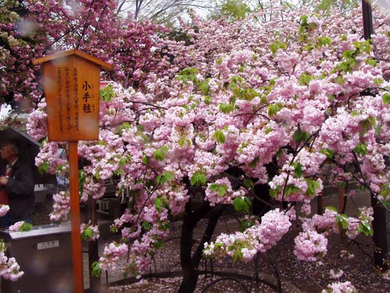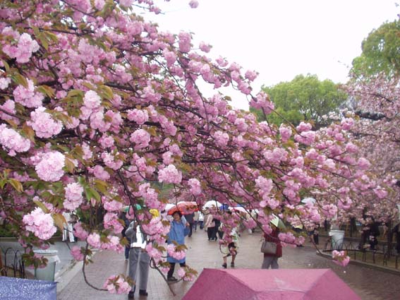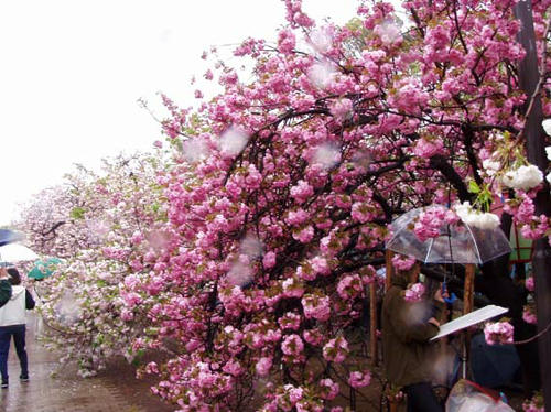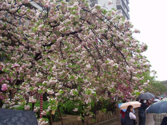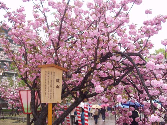 今年の桜は121品種369本で、雨にも拘らずたくさんの人出。
