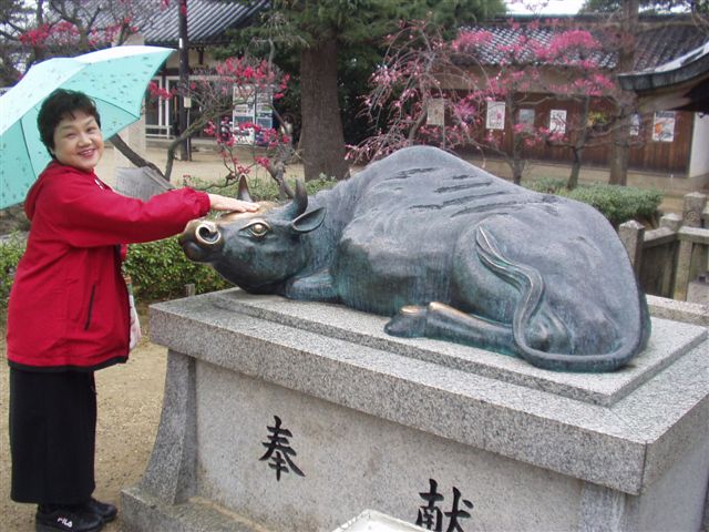 10.これは撫で牛といいます。天神さん(道真公)のお供と