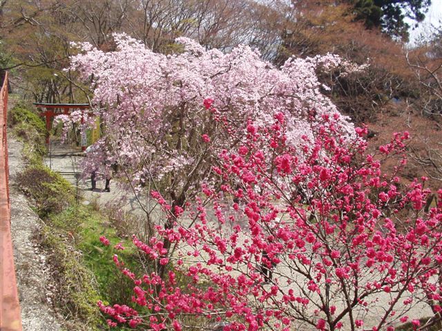 1. とりあえずは神社付近の桜、平地は散りかけていますがここは満開。