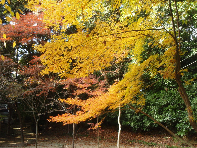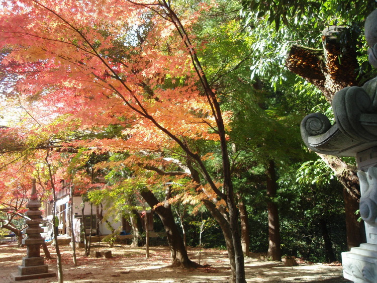 3.ここの参道はもみじに囲まれて上がって行きます。