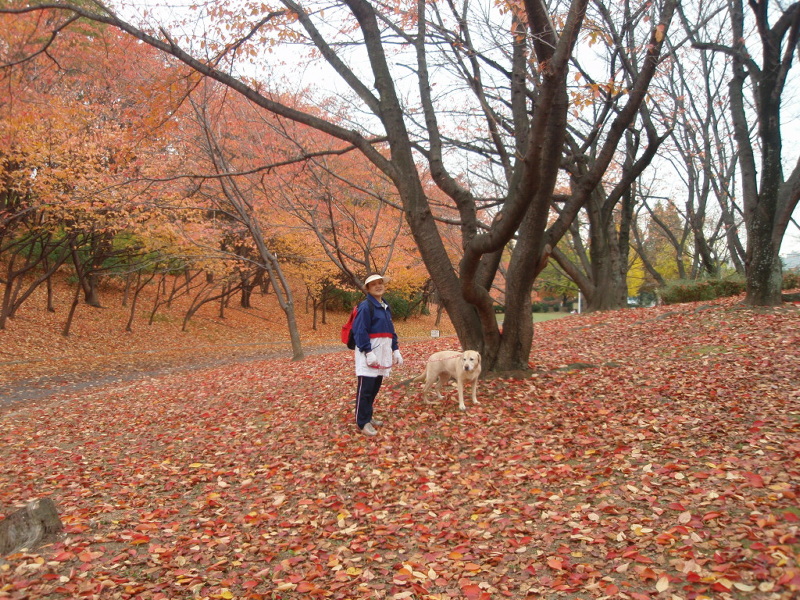 何枚かの絵をご覧下さい。はなも紅葉狩りをしていますよ。