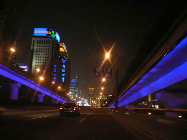 タクシーの中から。市内の高速道路はタダ。日本も見習え!ライトアップが絶妙。