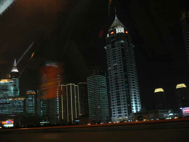 これもタクシーの中から。高層ビルももちろんライトアップ。デジカメは今回に