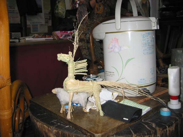 お猿さんのわら人形がありますね。これはここのおやじさんが