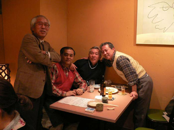左から 森永 城南中の仲間 いつも天神あたりで飲んどるから電話しようと掛けたら