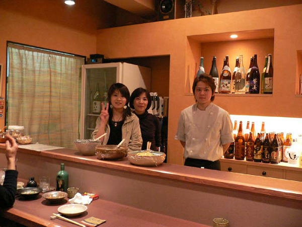 カウンターの中。この3人が中心。奥さんと娘さん。息子同然という