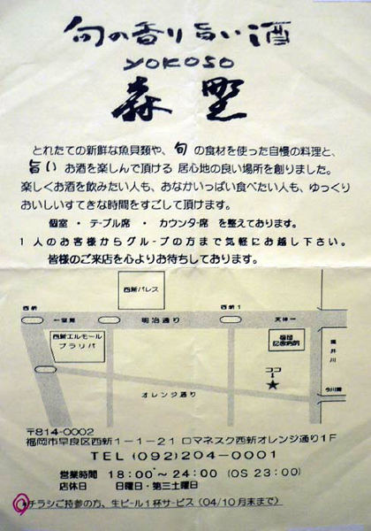 久し振りなので一杯やるか、中学の同級生の森野がやっている、で行ったのがここ。