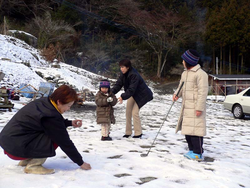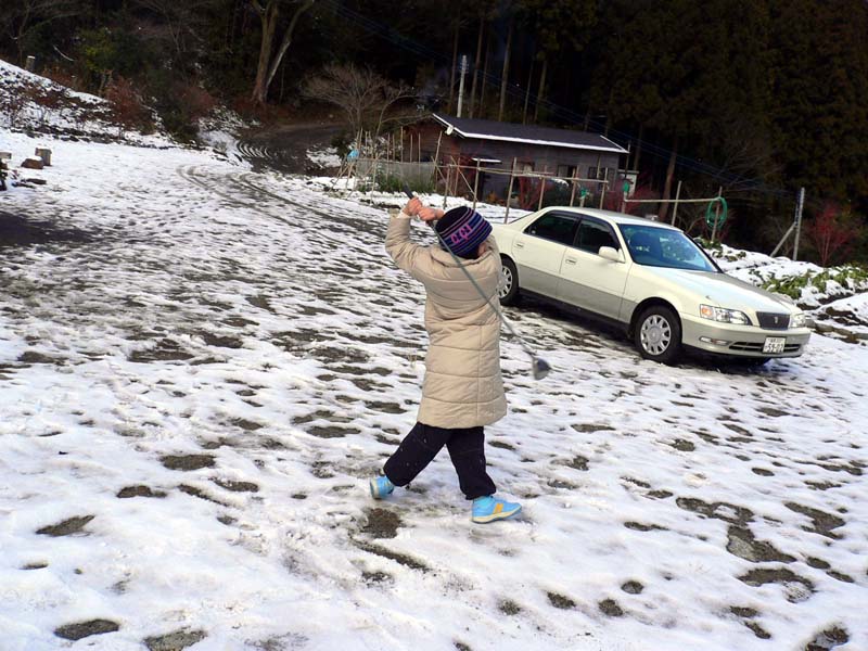 さっそく、浩子ママが雪でゴルフの練習だ、と言って特訓。