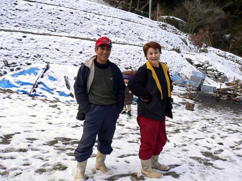 興平夫婦が焼き芋を焼きながら、待っていて到着を歓迎してくれました。