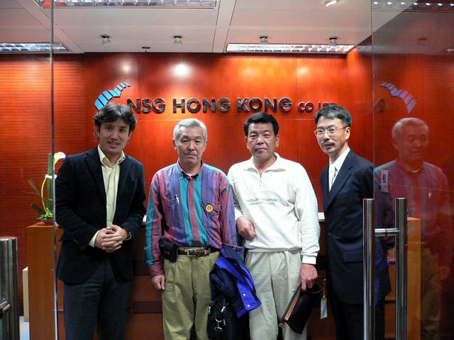香港の事務所で記念撮影。髭が所長。ビルのトイレは鍵が掛かっている。