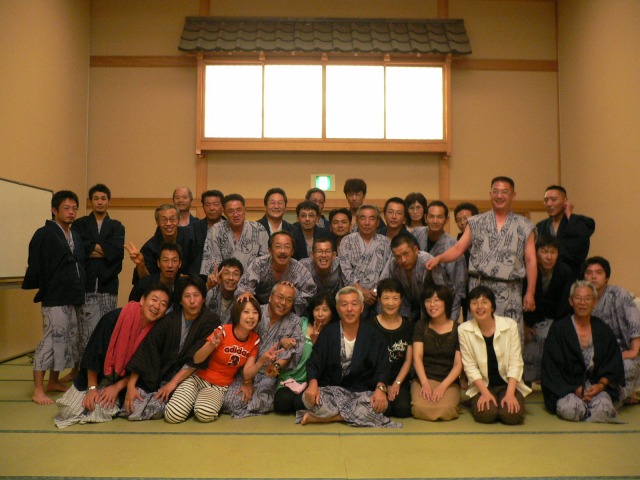 定山渓のホテルで宴会。記念写真。大騒ぎなのだ。